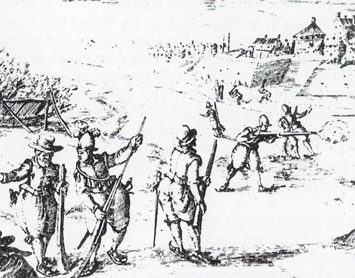 Amsterdam was the prize for the Spanish. They decided to take the city by attacking with ships in the harbor. It was winter and the Dutch fleet was frozen in the port of Amsterdam, unabling the Dutch to confront the Spanish ships head-on. The Spanish took advantage of the situation and decided to march on foot over the ice and attack the ships. As they marched gingerly across the frozen ice, they were suddenly confronted by waves of Dutch soldiers flying across the surface of the ice with unbelievable speed. The skating militia came into range just long enough to fire a musket before retreating behind walls of ice and frozen snow.