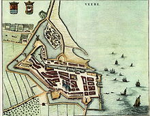 Located on the land-locked island of Walcheren in Zeeland, Veere was a mere harbor hamlet in the 13th century with direct access to the North Sea. It was founded by nobleman Wolfert I van Borselen (1245-1299) in 1281 when he built a modest ferry house complete with a ferry, hence the name Veere (ferry). After he built an enormous castle nearby called Zandenburg, he needed a ferry to get off the island for business and groceries.
