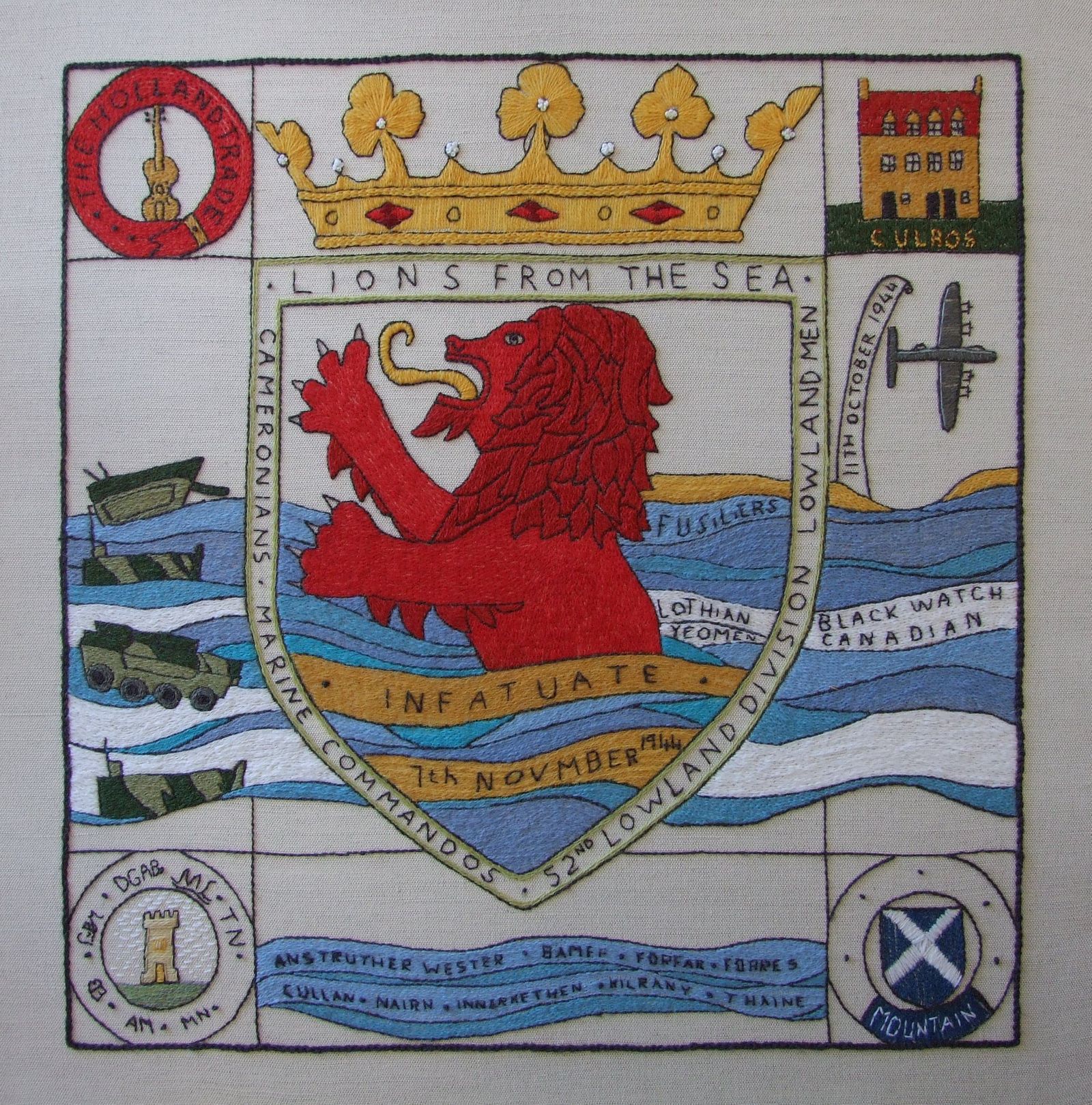 In 2012, Scotland designed a large 153 meters (502 ft) in length, tapestry artwork. The tapestry consists of 305 panels, depicting the history of the migration throughout the centuries. At various places around the world, volunteers embroidered “their” own parts of the tapestry, called “panels.” This magnificent and inspiring tapestry was embroidered from 2012 up to 2014 in 34 countries to which Scots immigrated to create their diaspora. Veere was assigned the production of six of these. The tapestry had its world premiere in 2015 in Veere. This artwork is still touring around the globe.