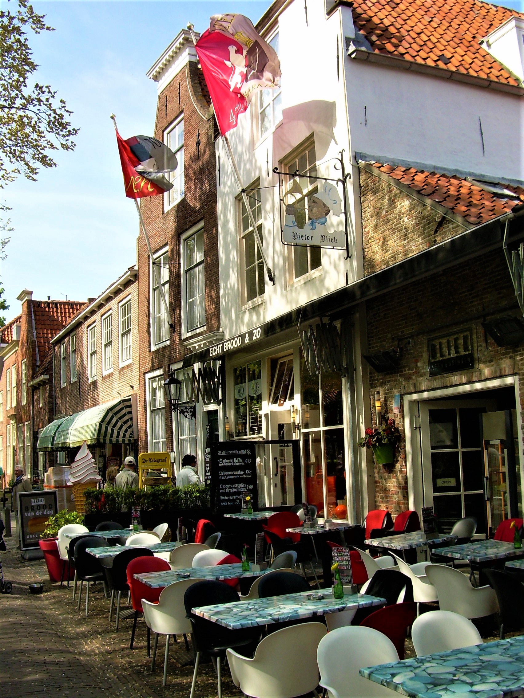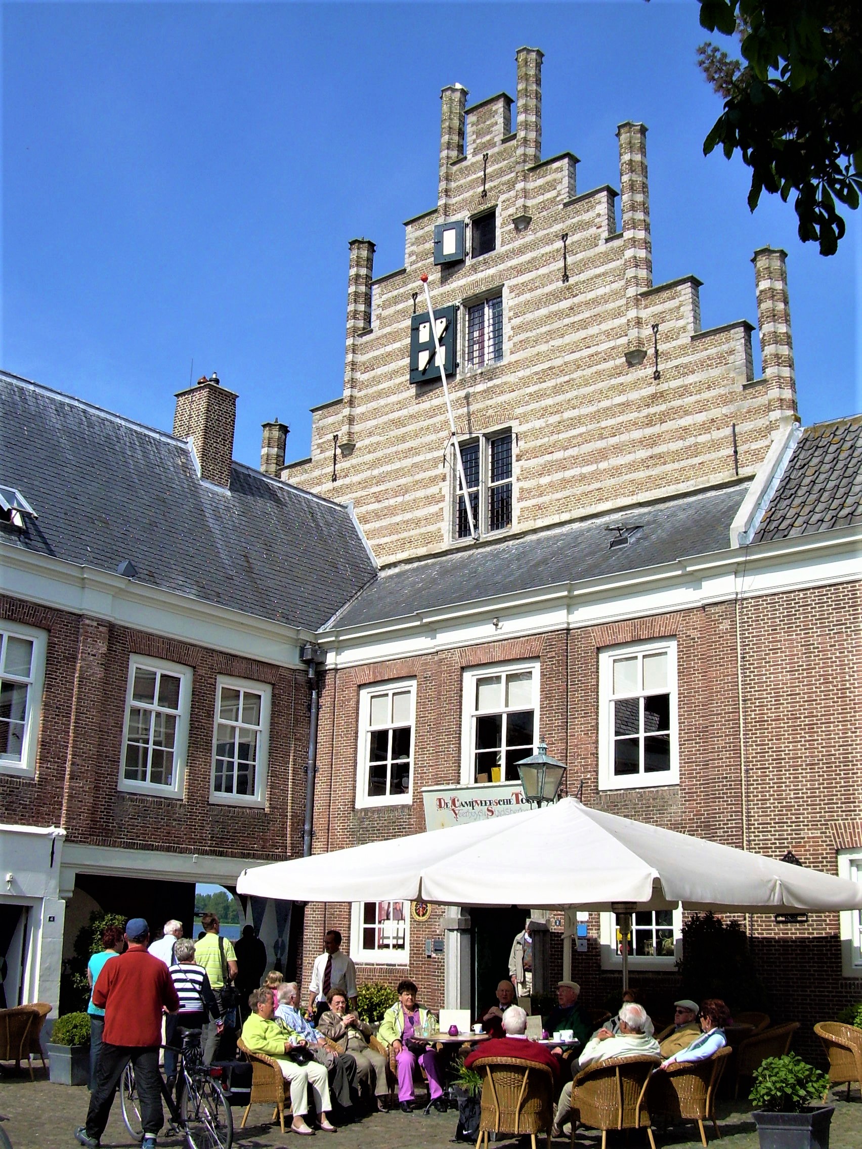 Built as part of the city’s defenses in 1400, the Campveerse Toren (Campvere Tower) is an imposing and monumental defense structure at the harbor’s entrance. It’s a monumental defense structure meant to defend the port of Veere. Over the centuries the building has been shot at, partly destroyed and rebuilt. During the Second World War, the western wing of the tower was levelled by Nazi occupation for artillery clearance to the North Sea. The restored and imposing tower endured two floods, from dikes bombed in 1944 and the “perfect” storm in 1953. The entire complex was restored in 1950 and again in 2007. It was registered as a national monument in 1967. Today the building is a luxury hotel with a fine dining restaurant. It remains one of the oldest inns in the Netherlands.